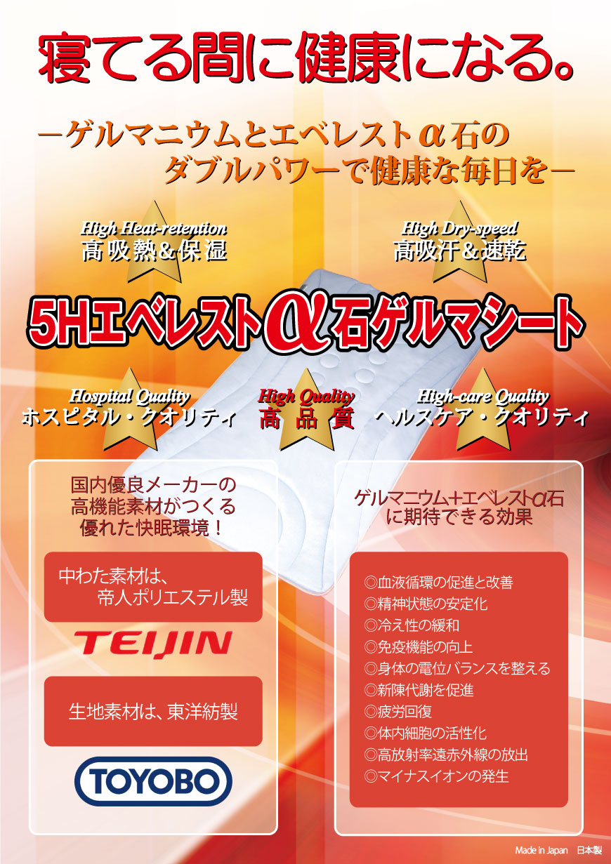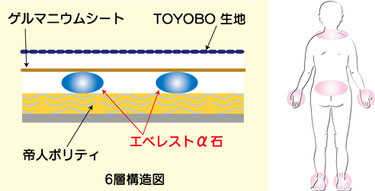 中材 | ポリエステル(帝人「ポリティ」)、ゲルマニウムシート、エベレストα(アルファ)石 |